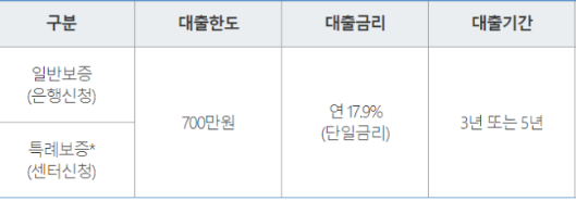 - 신용 6등급 이하 (연소득 3천5백만 원 이하 신용등급 제한 없음)