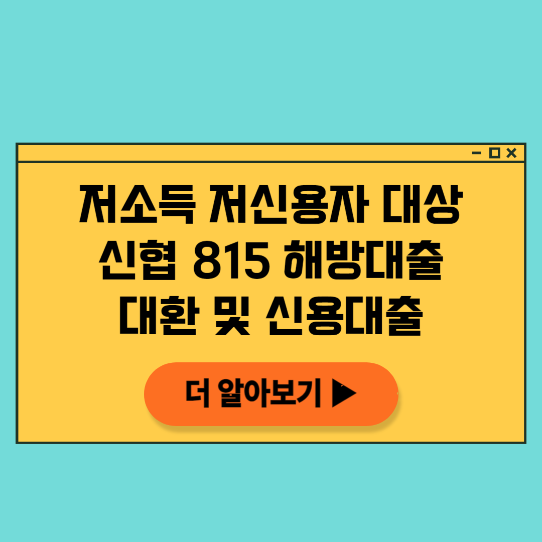 신협 815 자유롭게 대출은 이제까지 불법적인 금융 활동으로 고생하고 있는 저소득 및 저신용의 사람들을 위해 부채의 압박을 줄이기 위해 신협에서 2019년 광복절에 도입한 제품입니다.