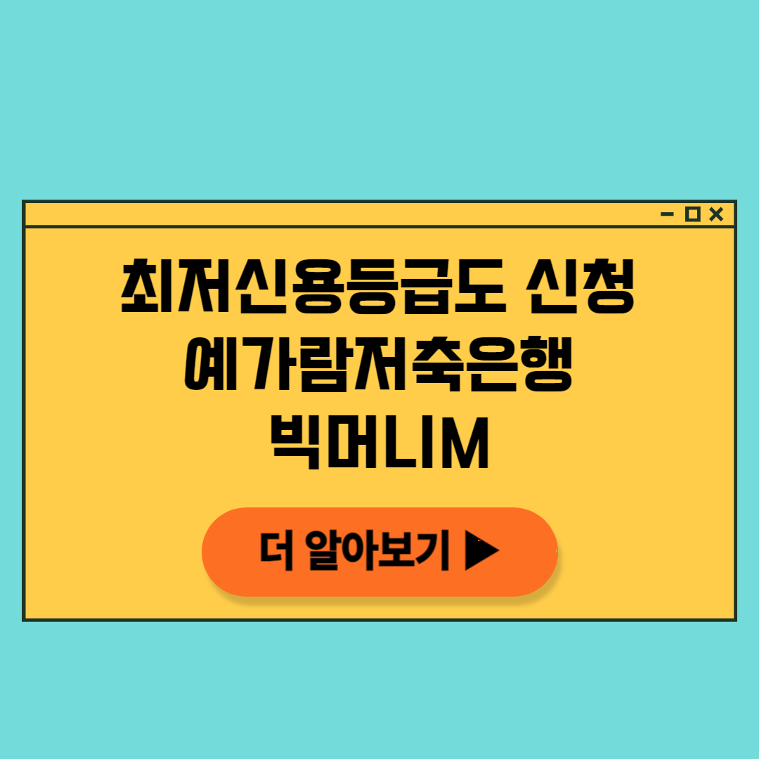 예가람저축은행에서는 신용도가 낮은 고객분들을 위한 빅머니M 신용대출을 새롭게 선보이고 있습니다. 이 서비스를 통해 신용등급이 하위에 해당되는 분들도 담보 없이 상당한 금액을 대출받을 수 있는 기회를 제공합니다.