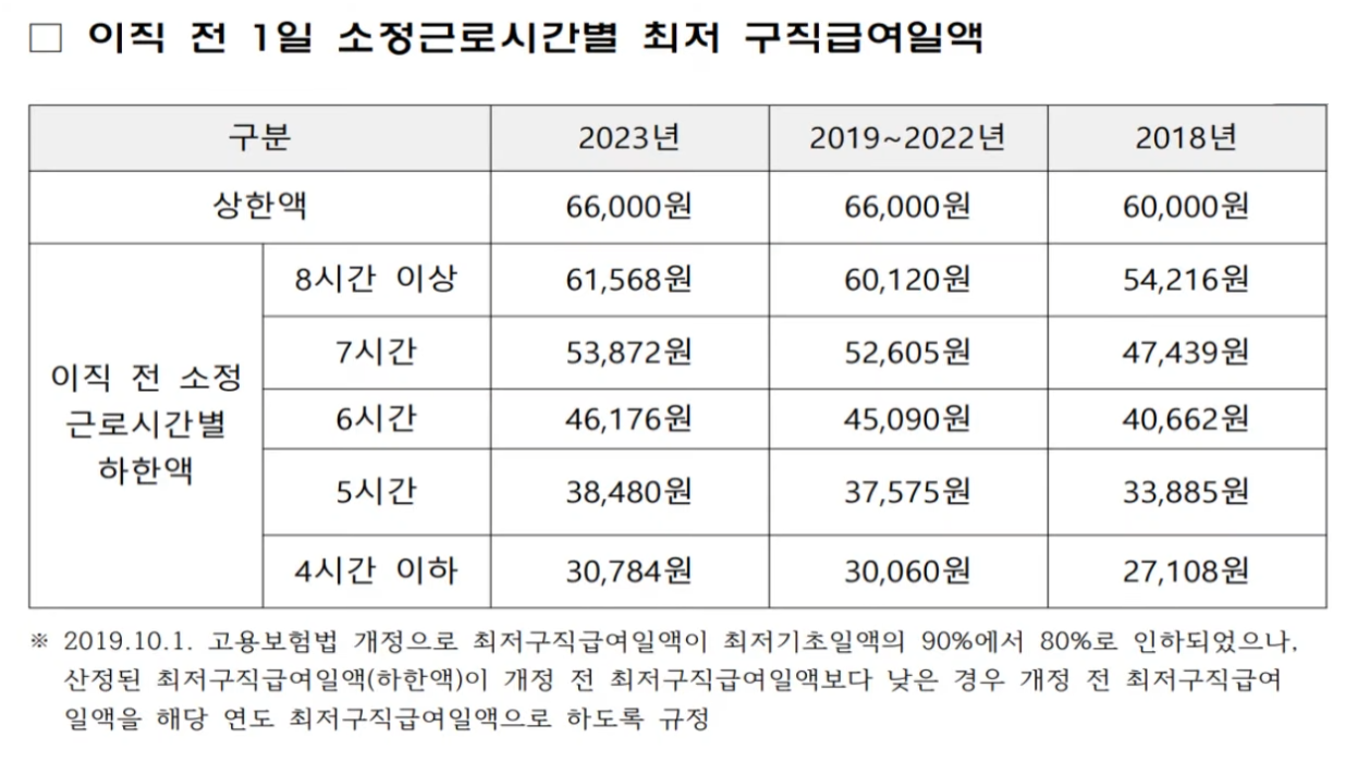 최저 구직급여 일액이 인상되고 일일 수 근로시간 산정 방법이 변경됩니다.