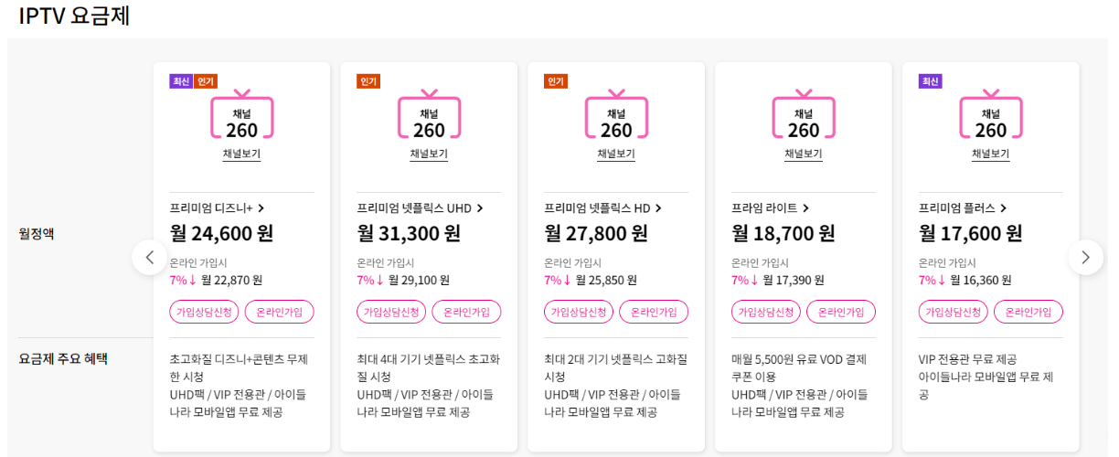 LG유플러스에서는 넷플릭스와 디지니플러스를 IPTV에서 즐기는 다양한 요금제를 제공하고 있습니다.