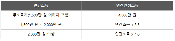 - 부부 합산 연 소득 5천만 원 이하 *신혼부부, 2자녀 이상 가구, 혁신도시 이전 공공기관 종사자 및 재개발지역 이주자는 6천만 원까지 허용