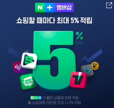 네이버멤버십을 이용하면서 네이버쇼핑을 이용하시면 최대 5% 적립+스페셜 서비스가 제공됩니다.
